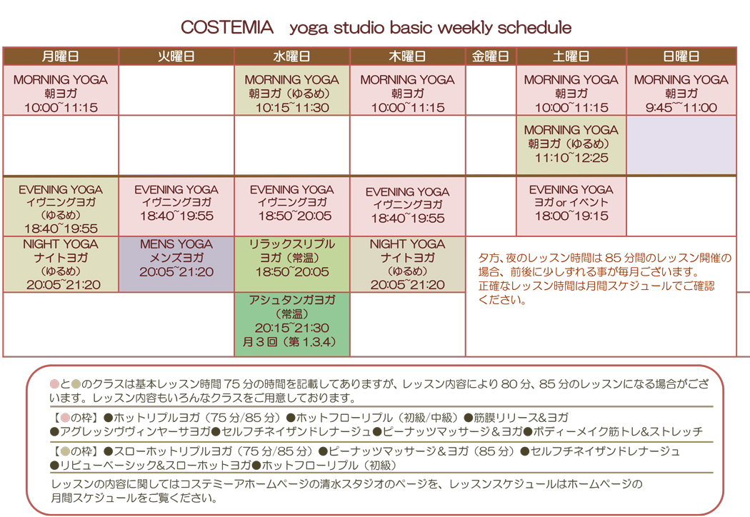 COSTEMIA清水 yoga lesson固定スケジュール