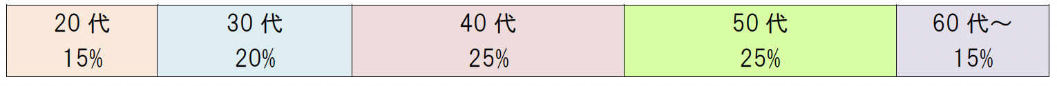 年代的には20代の方15%、30代の方20%、40代の方25%、50代の方25%、60代以上15%くらいの割合です。ヨガは健康な方々なら皆さん一緒にレッスンできるので、様々な女性の年代の方と行き来できる素晴らしいソーシャルな場所でもあります。
