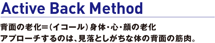 30歳を越えると、年々放っておけば冬眠状態に入っていく背面の筋肉は増えますが、Active Back Methodでは年々それらを呼び覚まして、活性化していく指導をします。