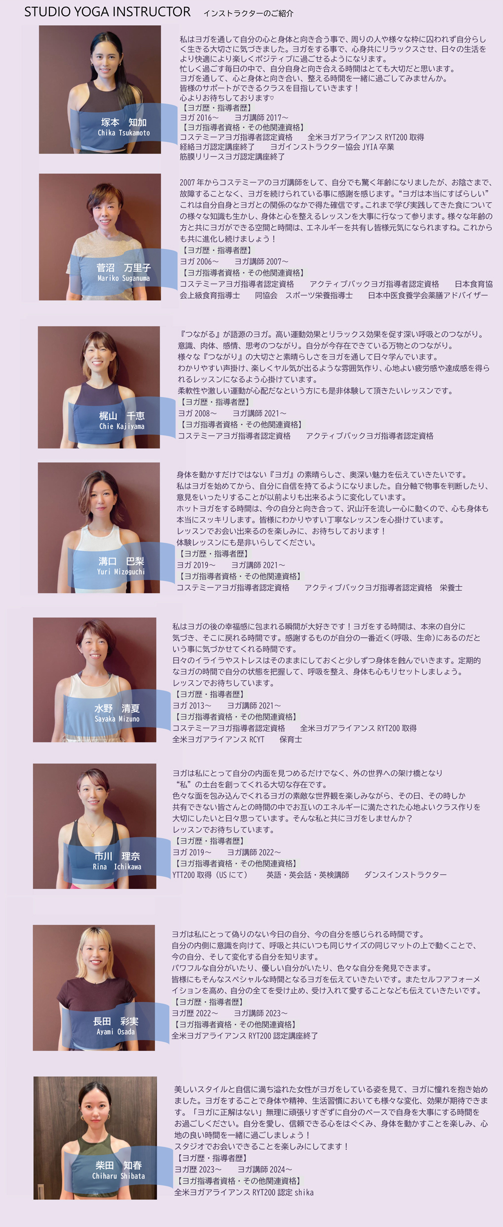 COSTEMIA yoga studio ヨガインストラクターご紹介